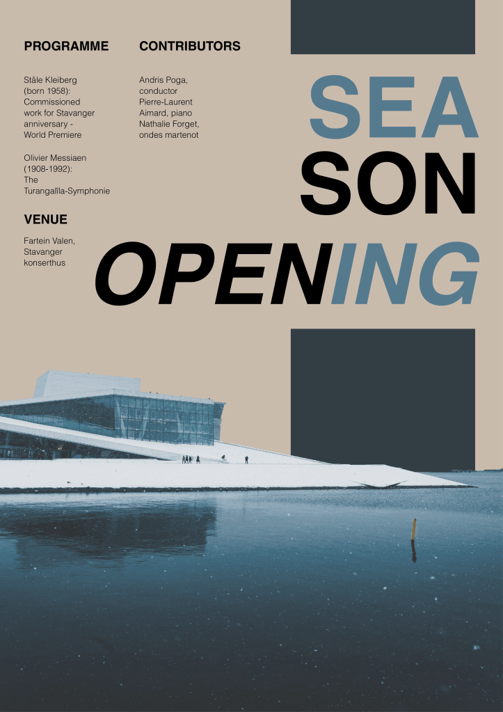 For my first assignment, I created a Swiss Style poster promoting the opening season at the Stavanger Concert House. I applied a strict grid system to achieve the clean, harmonious aesthetic characteristic of the Swiss Style. The design aimed to communicate the message clearly—not only through the written information, but also through the hierarchy of the heading and the use of imagery.